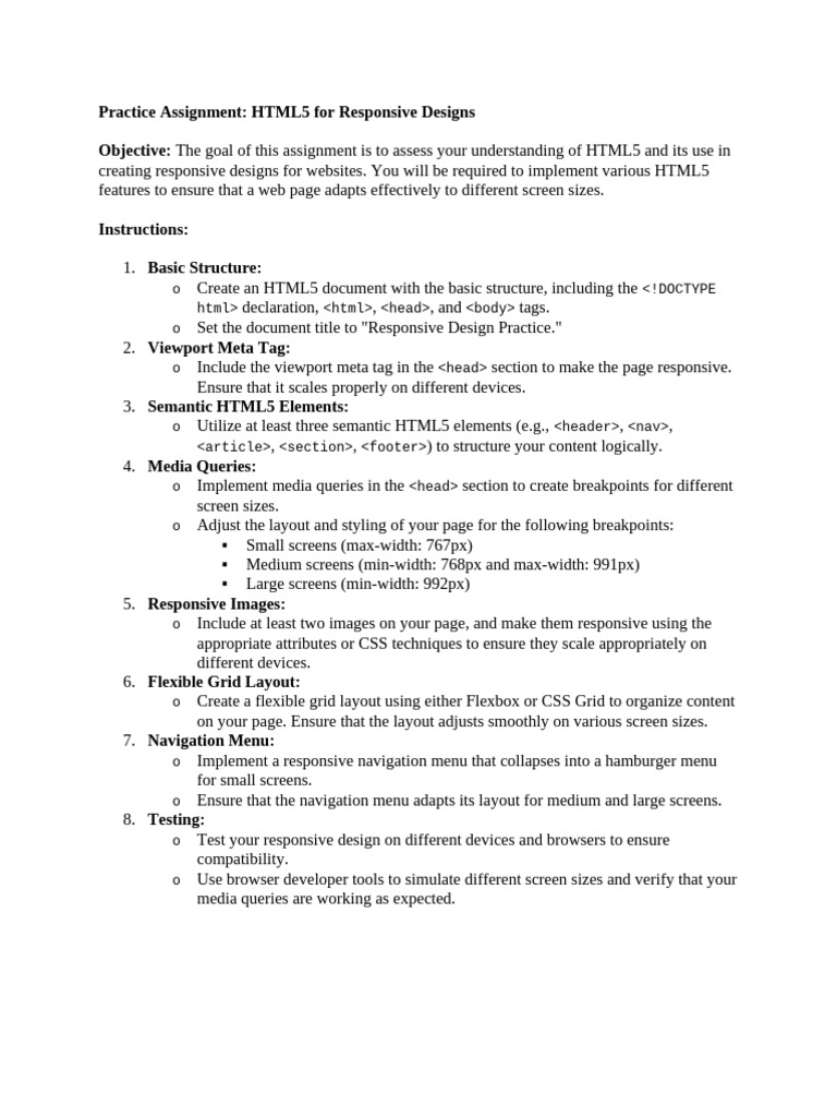 Objective: The goal of this assignment is to assess your understanding of HTML5 and its use in