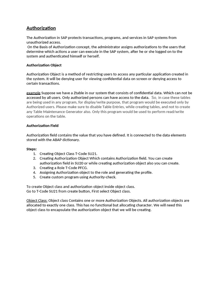 The Authorization in SAP protects transactions, programs, and services in SAP systems from