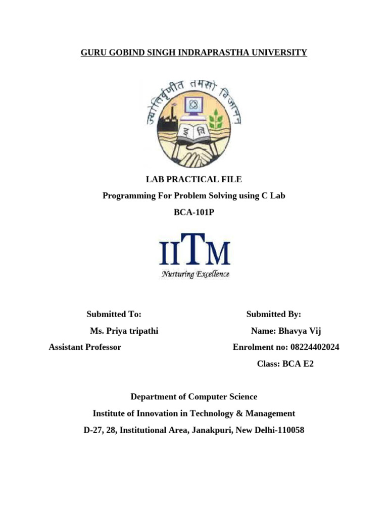 Programming For Problem Solving using C Lab