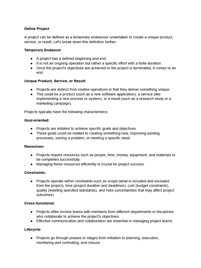 ● It is not an ongoing operation but rather a specific effort with a finite duration.