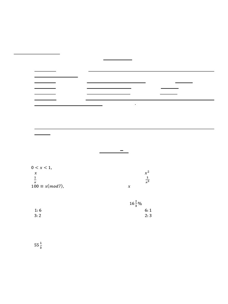 1. If 0 < 𝑥 < 1, which of the following is greatest