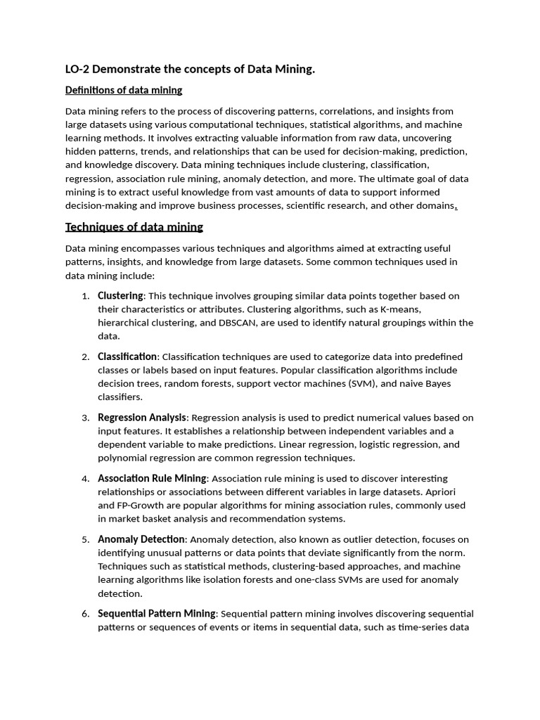 LO-2 Demonstrate the concepts of Data Mining.