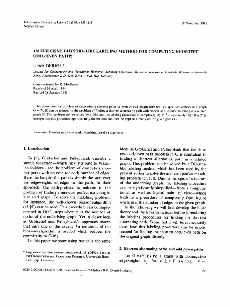 AN EFFICIENT DIJKSTRA-LIKE LABELING METHOD FOR COMPUTING SHORTEST O D D / E V E N PATHS Ulrich DERIGS *