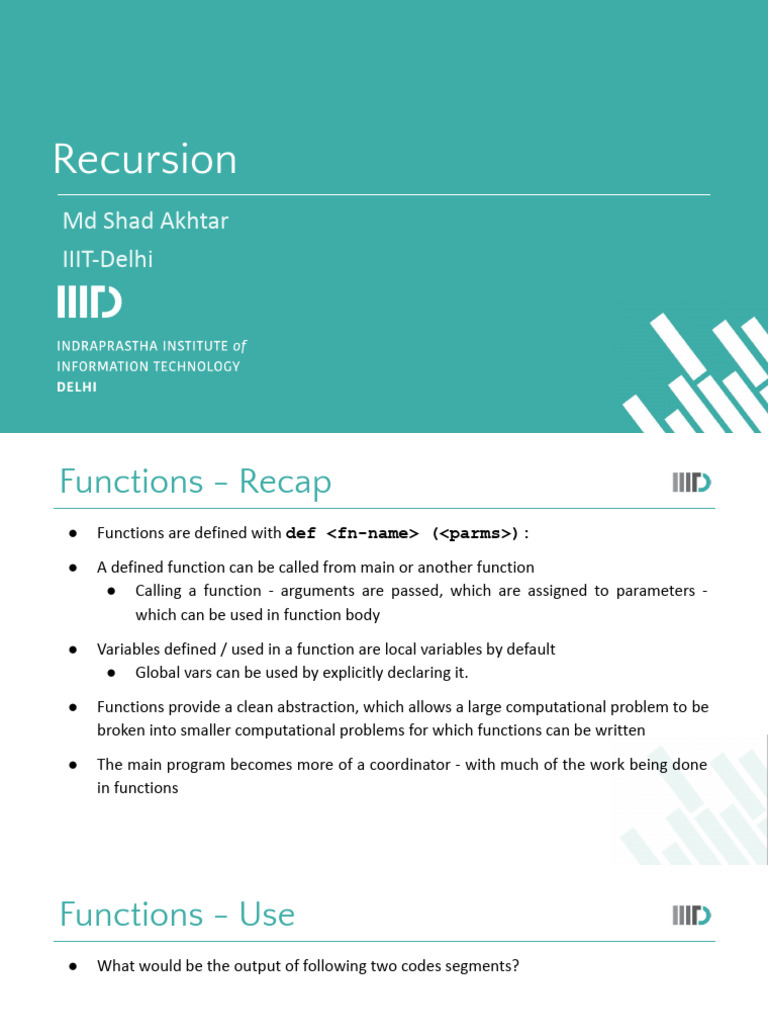 Functions - Recap