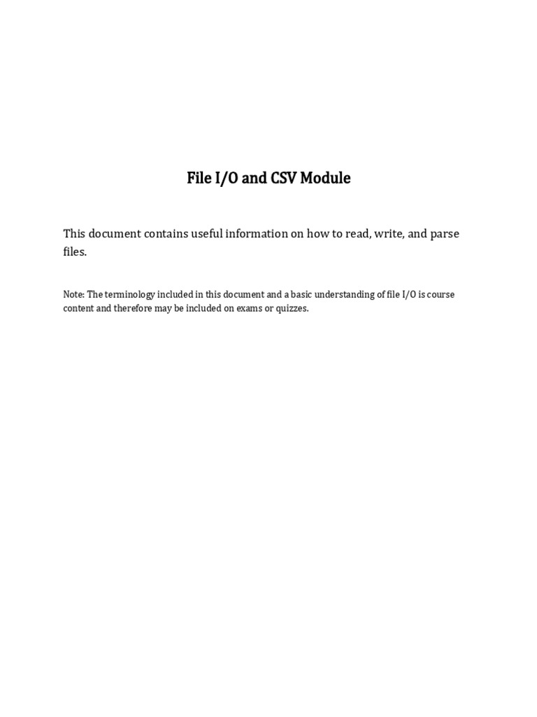 Note: The terminology included in this document and a basic understanding of file I/O is course
