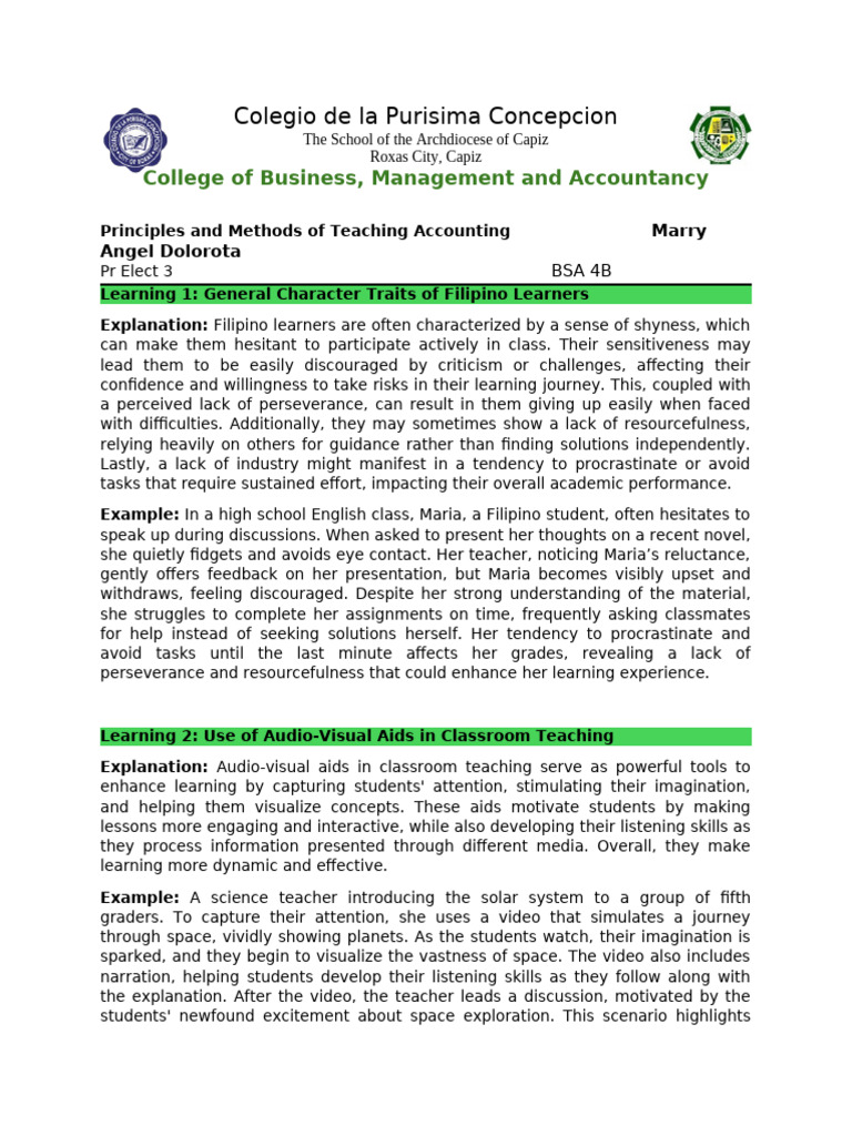 Learning 2: Use of Audio-Visual Aids in Classroom Teaching
