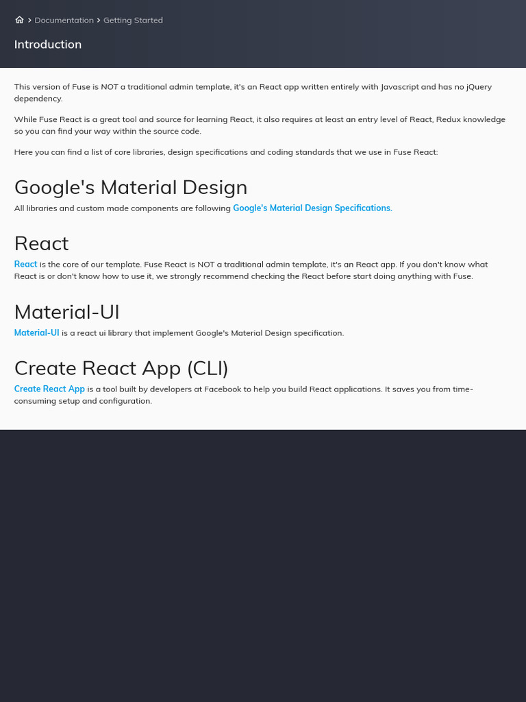 React is the core of our template. Fuse React is NOT a traditional admin template, it's an React app. If you don't know what