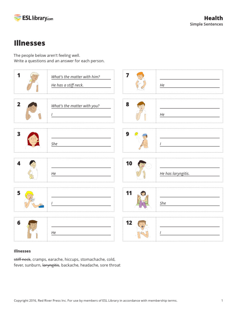 Have students fill in the correct illness or injury.