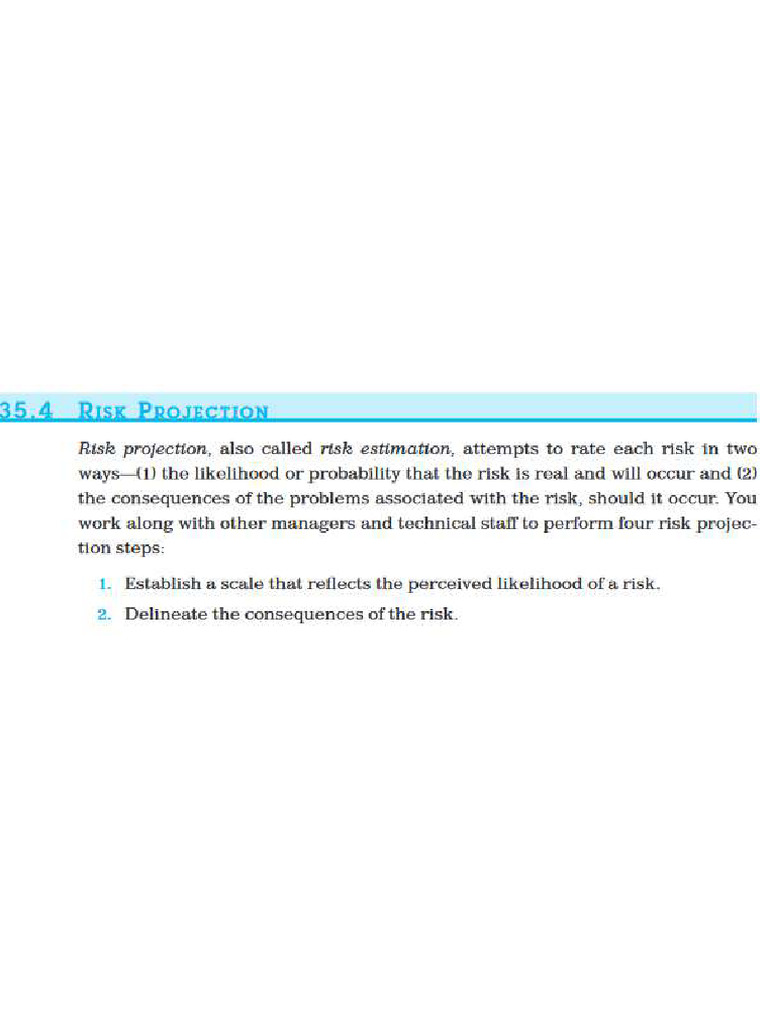 Risk projection, also called risk estimation, attempts to rate each risk in two