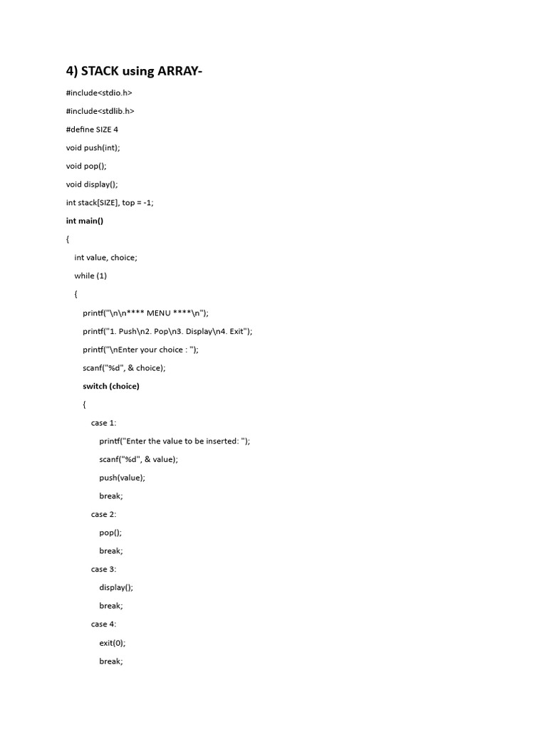 printf("1. Push\n2. Pop\n3. Display\n4. Exit");