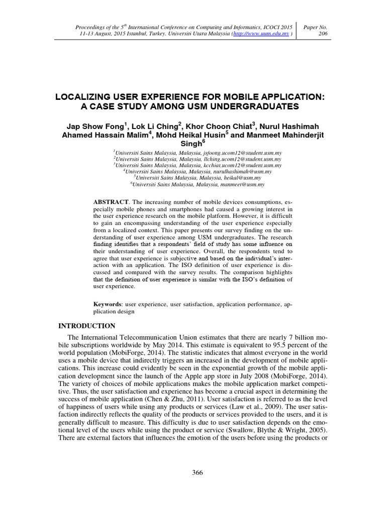 derstanding of user experience among USM undergraduates. The research