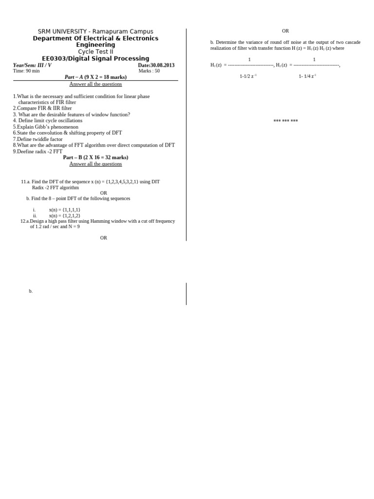 Year/Sem: III / V Date:30.08.2013 H1 (z) = ----------------------------, H2 (z) = ----------------------------,