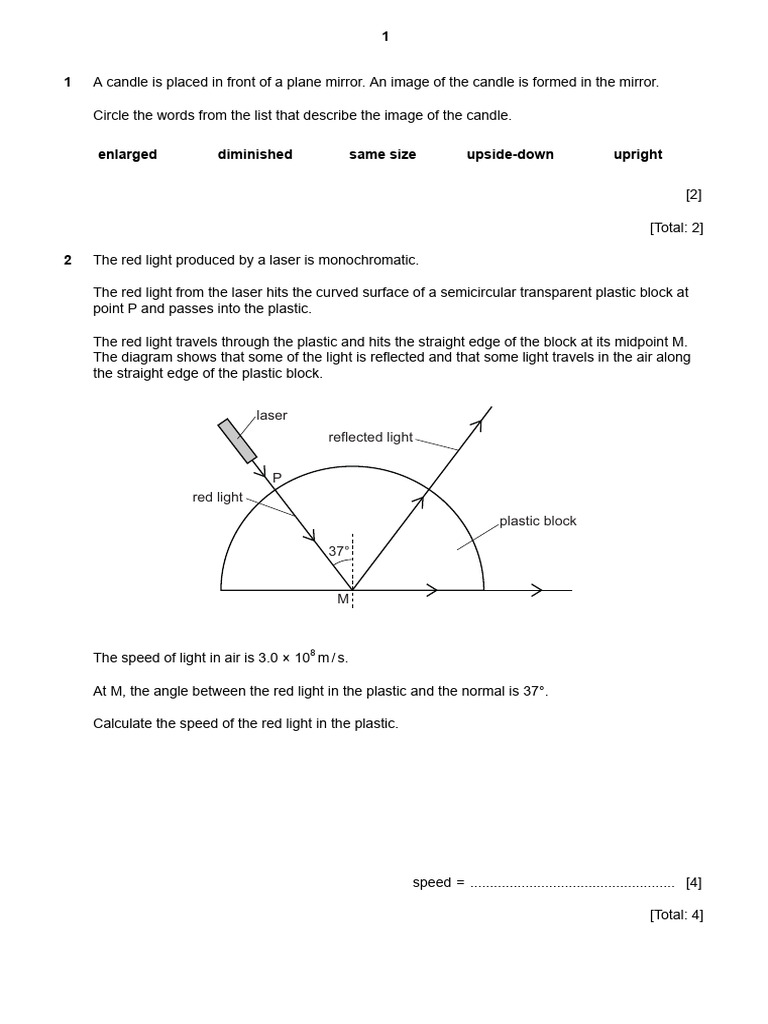 1 A candle is placed in front of a plane mirror. An image of the candle is formed in the mirror.