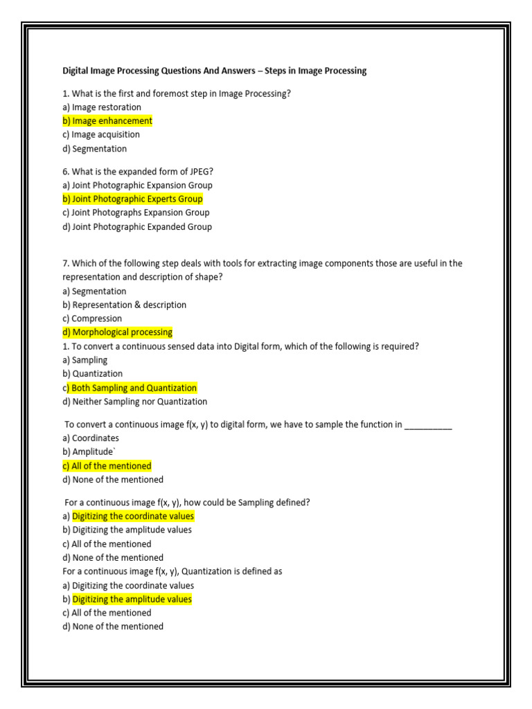 Digital Image Processing Questions And Answers – Steps in Image Processing