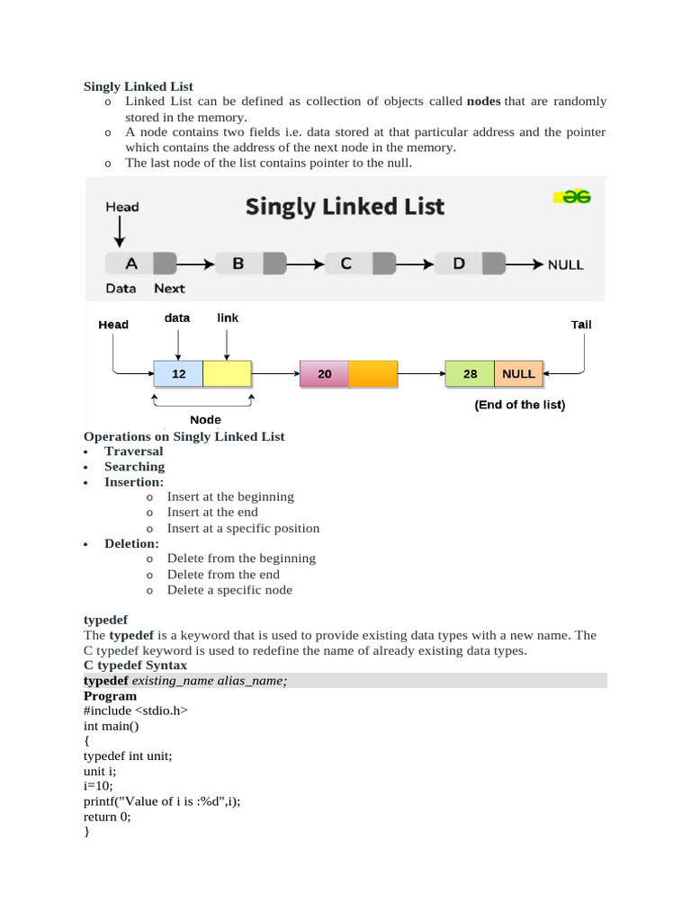 o Linked List can be defined as collection of objects called nodes that are randomly