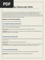 The University Wits were a group of late 16th-century English playwrights and