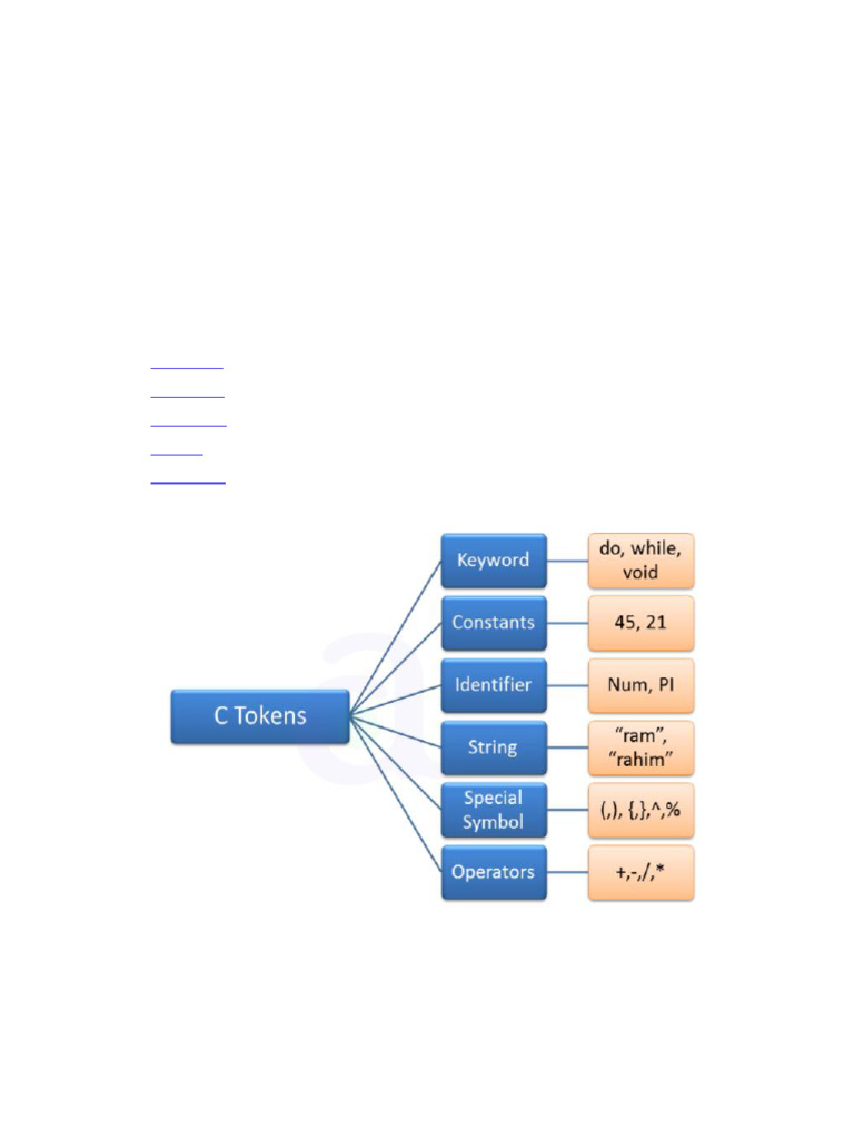 In C programs, each word and punctuation is referred to as a token. C Tokens are the