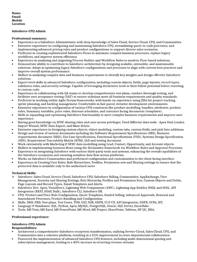 Spearheaded the implementation of Salesforce CPQ for a Fortune 500 client, resulting in a 40% reduction in quote