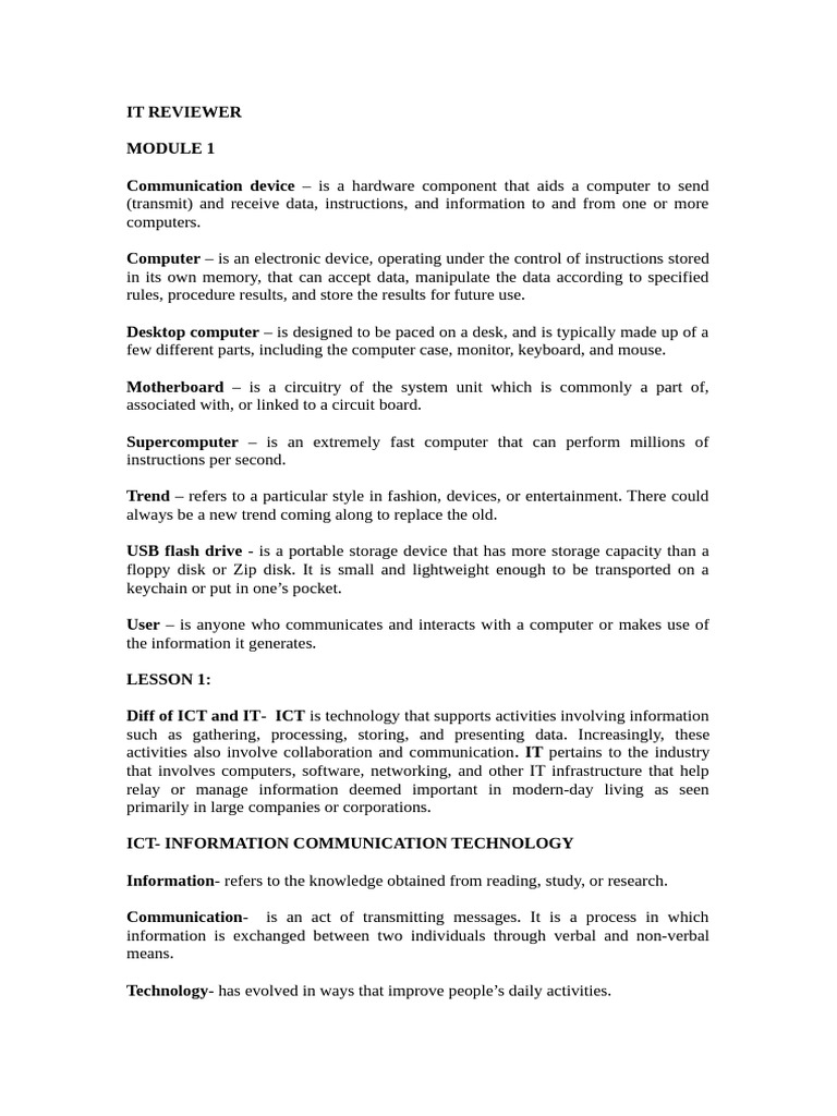 Diff of ICT and IT- ICT is technology that supports activities involving information