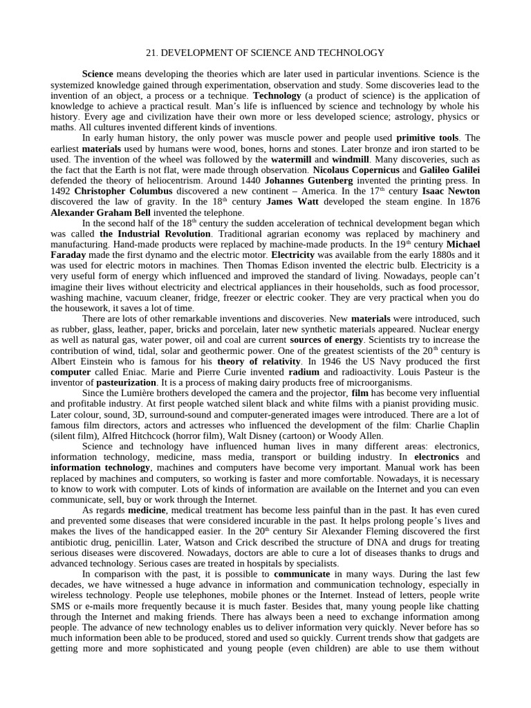 DEVELOPMENT OF SCIENCE AND TECHNOLOGY