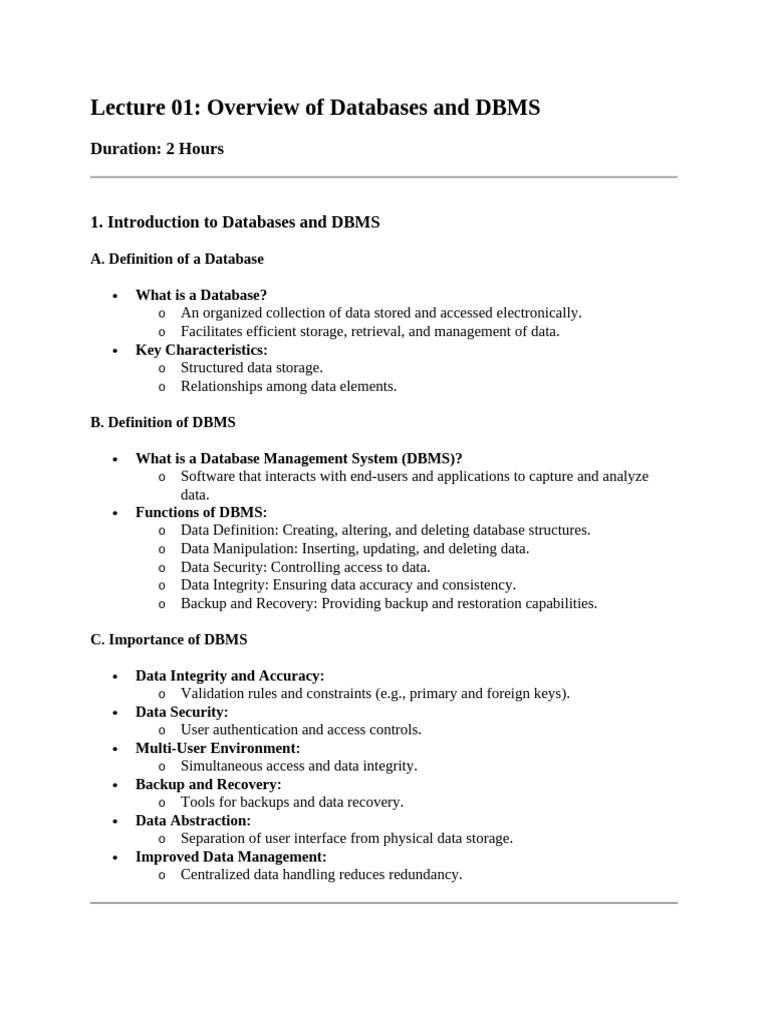 1. Introduction to Databases and DBMS