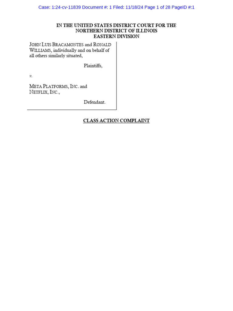 Defendants Meta Platforms, Inc. and Netflix, Inc. (“Netflix”), individually and on behalf of