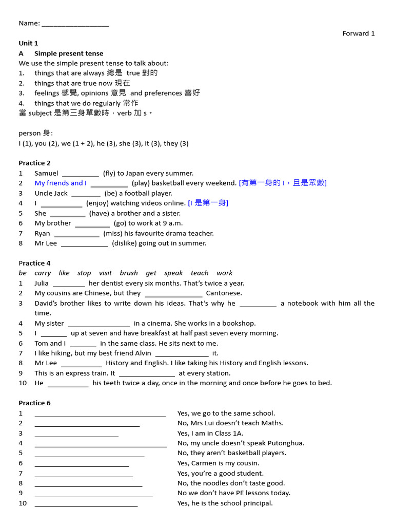 8 Mr Lee teaches History and English. I like taking his History and English lessons.