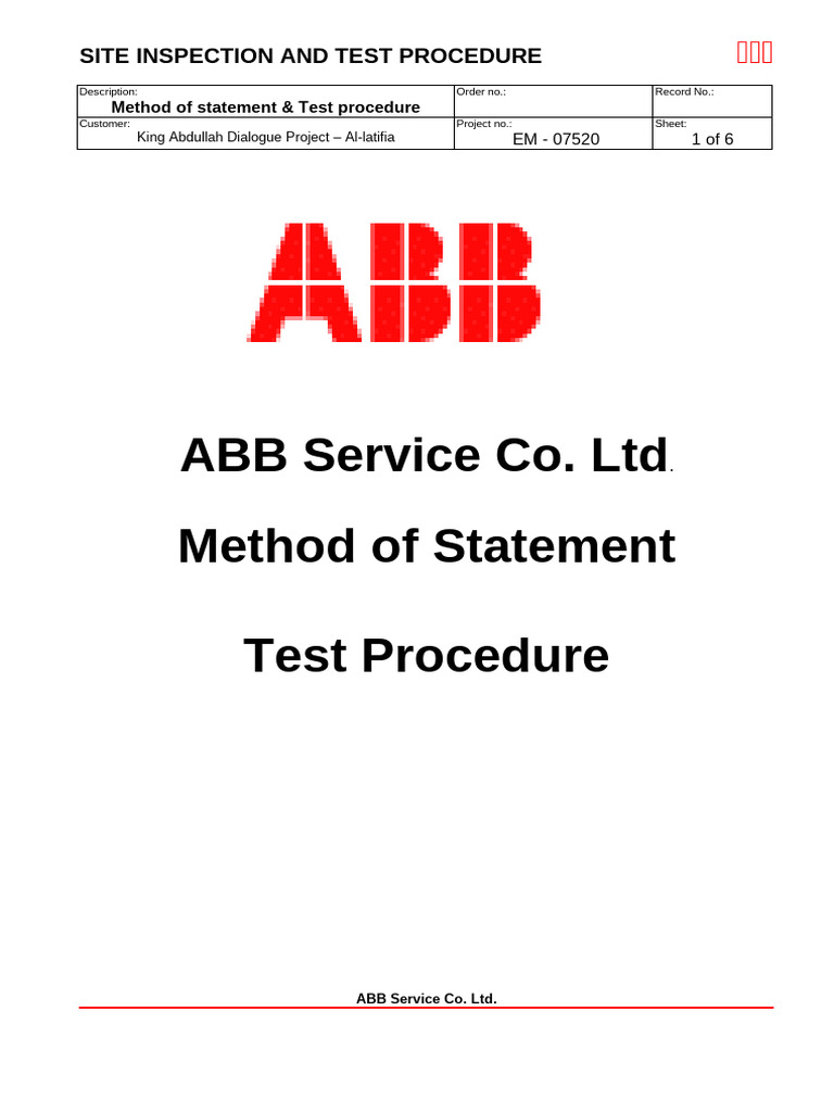 King Abdullah Dialogue Project – Al-latifia EM - 07520 Cont: 1 of 6