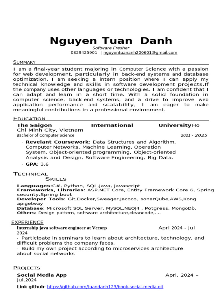 Internship java software engineer at Vccorp Aprl 2024 - Jul