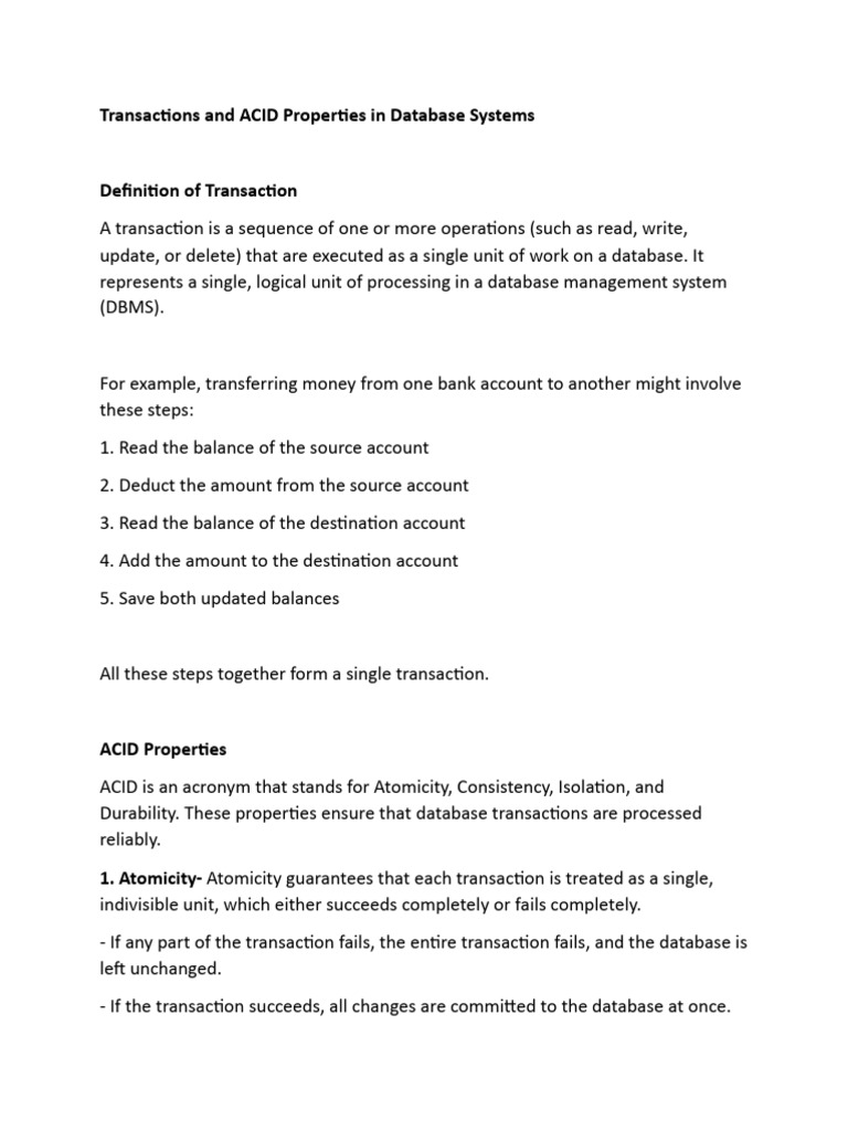 Transactions and ACID Properties in Database Systems