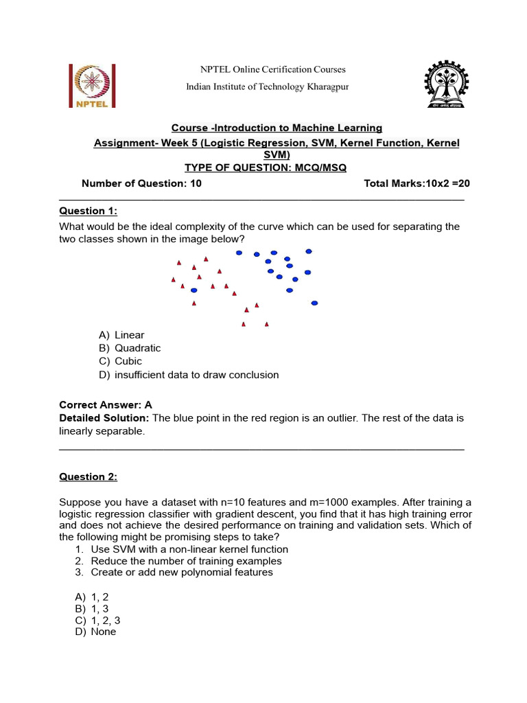 Assignment- Week 5 (Logistic Regression, SVM, Kernel Function, Kernel