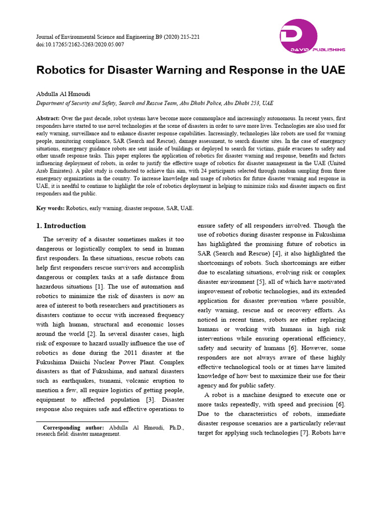 Key words: Robotics, early warning, disaster response, SAR, UAE.