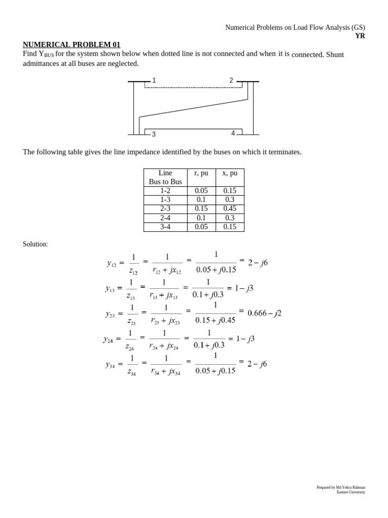 Find YBUS for the system shown below when dotted line is not connected and when it is connected. Shunt