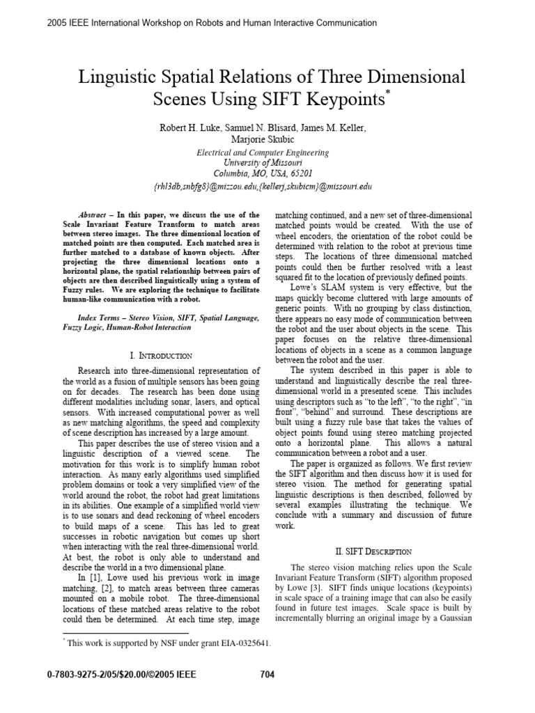 Index Terms – Stereo Vision, SIFT, Spatial Language, there appears no easy mode of communication between