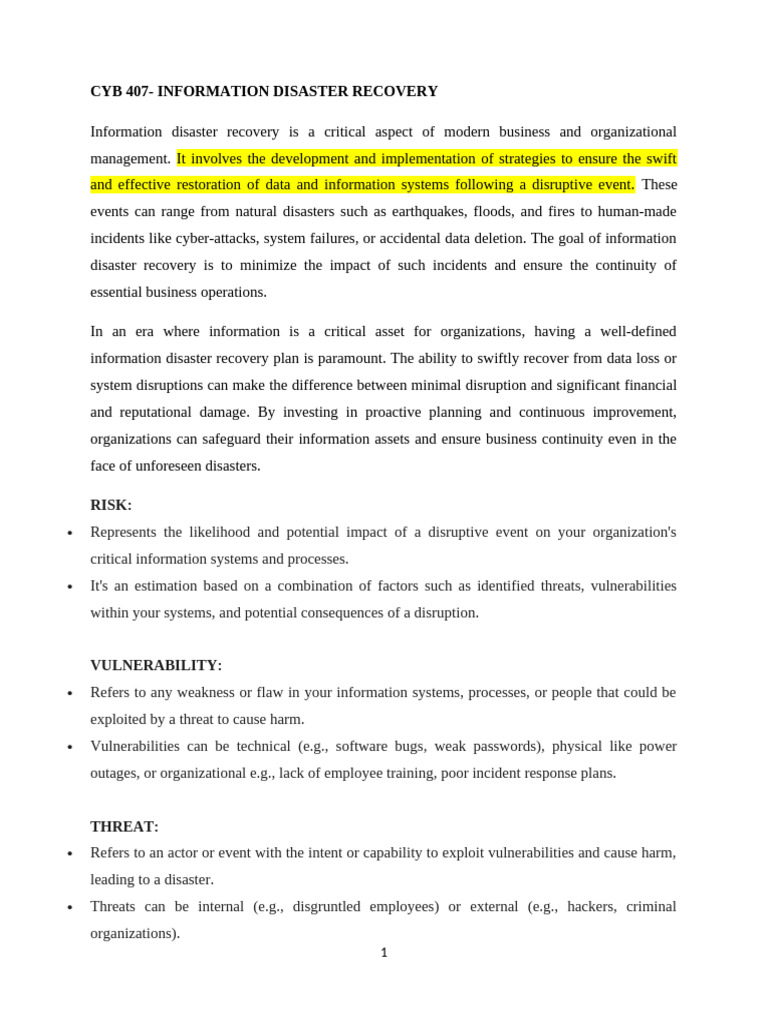 Disasters are serious disruptions that are capable of crippling the information systems, processes,