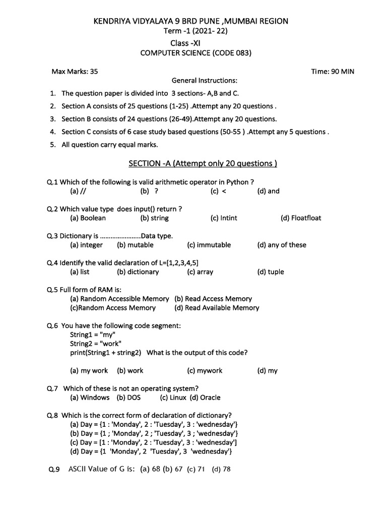 4. Section C consists of 6 case study based questions (50-55 ) .Attempt any 5 questions .