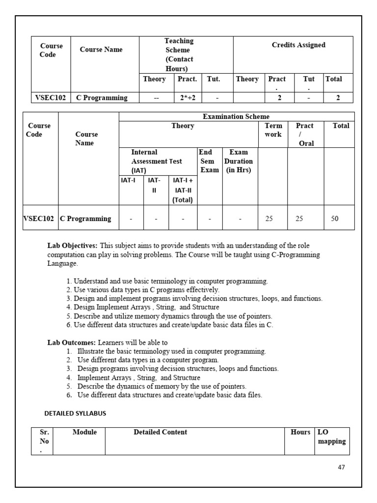 VSEC102 C Programming - - - - - 25 25 50