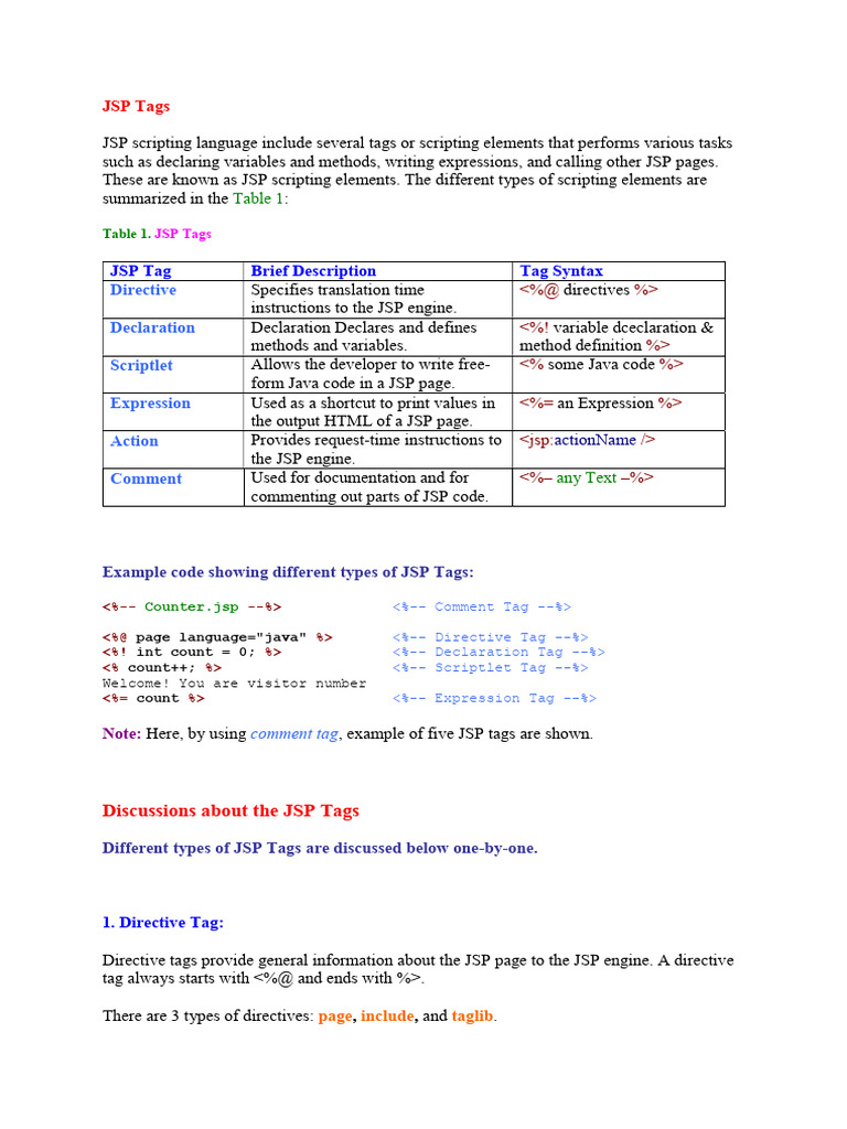 JSP scripting language include several tags or scripting elements that performs various tasks