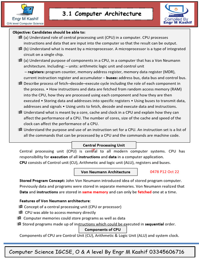 Computer Science IGCSE, O & A level By Engr M Kashif 03345606716