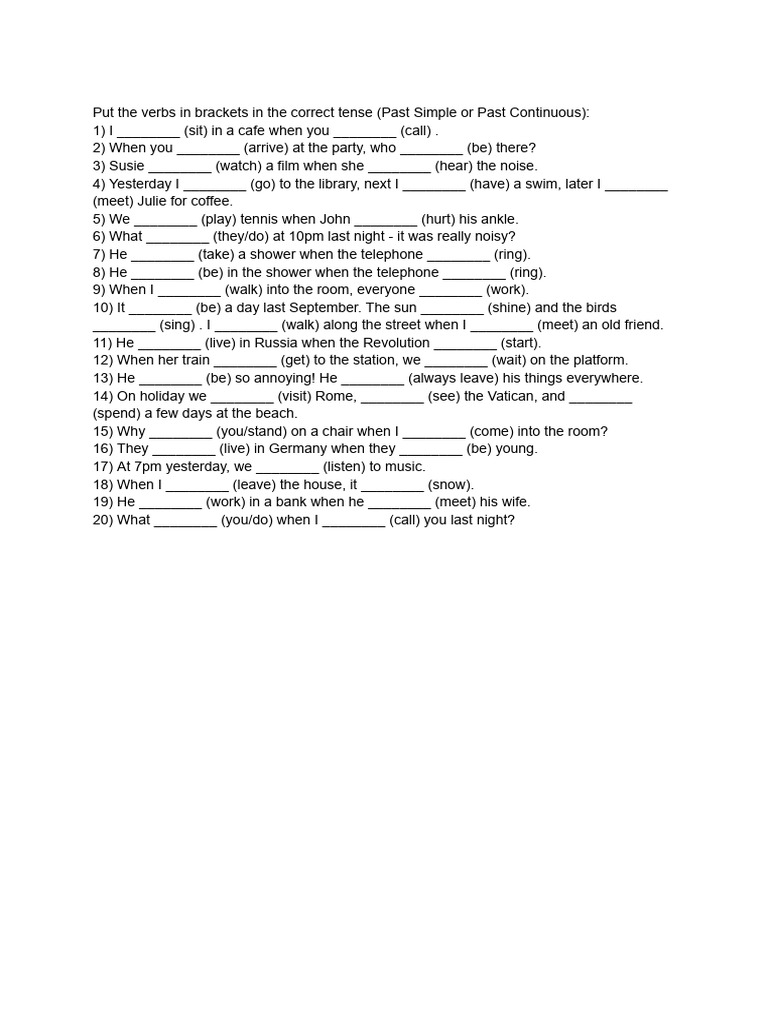 Put the verbs in brackets in the correct tense (Past Simple or Past Continuous):