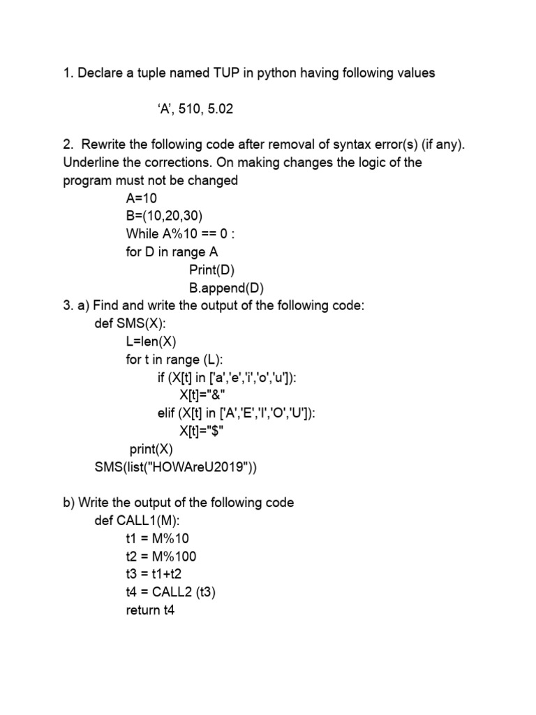 2. Rewrite the following code after removal of syntax error(s) (if any).