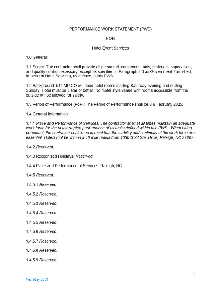 1.2 Background: 514 MP CO will need hotel rooms starting Saturday evening and ending