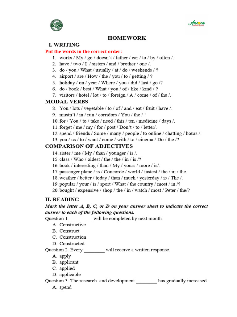 1. works / My / go / doesn’t / father / car / to / by / often /.