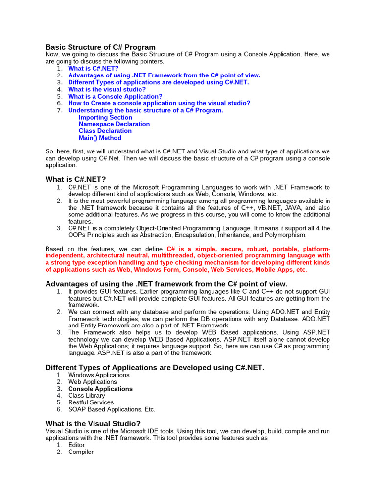 1. C#.NET is one of the Microsoft Programming Languages to work with .NET Framework to