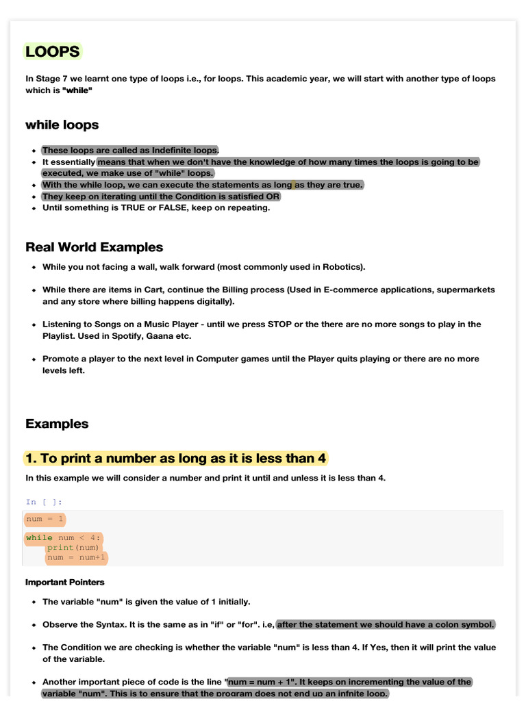 In Stage 7 we learnt one type of loops i.e., for loops. This academic year, we will start with another type of loops