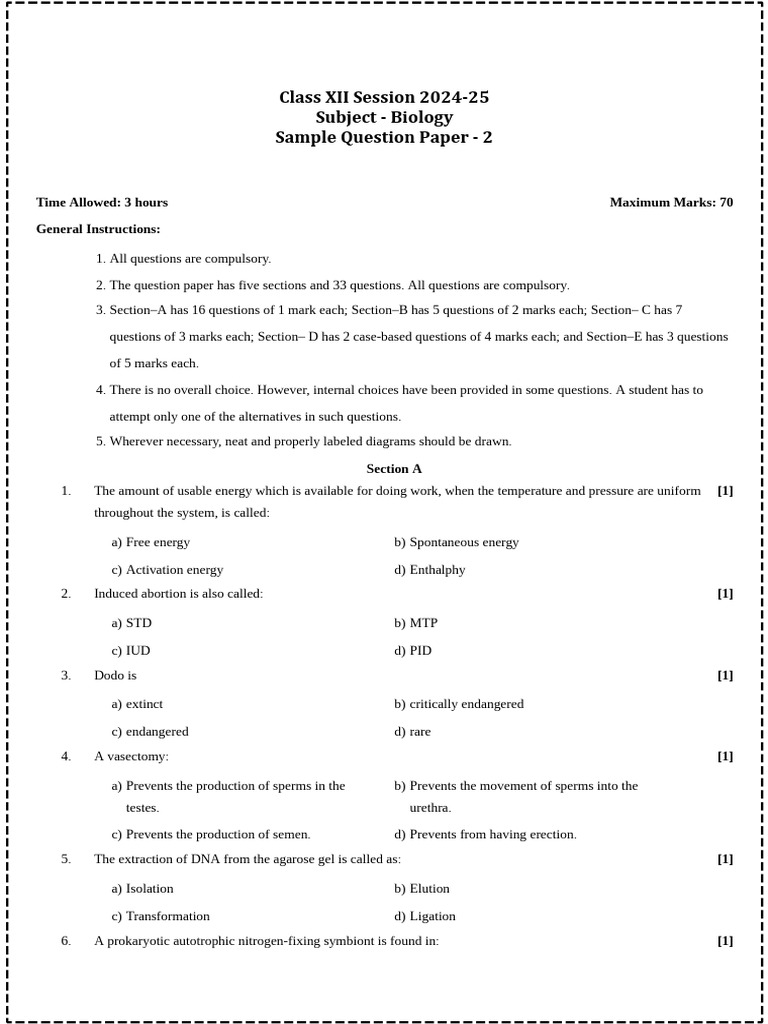 2. The question paper has five sections and 33 questions. All questions are compulsory.