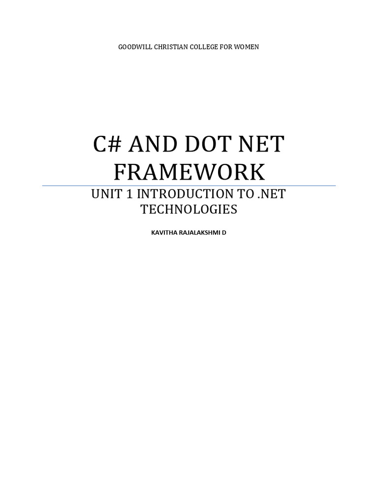 KAVITHA RAJALAKSHMI D INTRODUCTION TO .NET TECHNOLOGIES