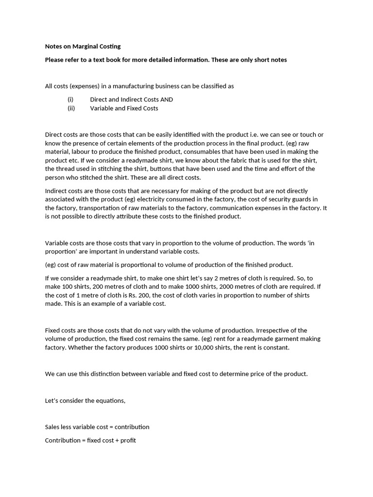 volume of production, the fixed cost remains the same. (eg) rent for a readymade garment making