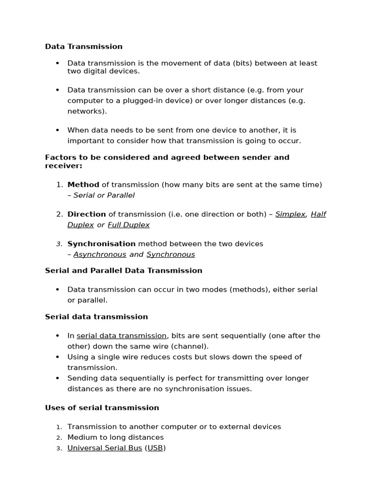 Uses of serial transmission