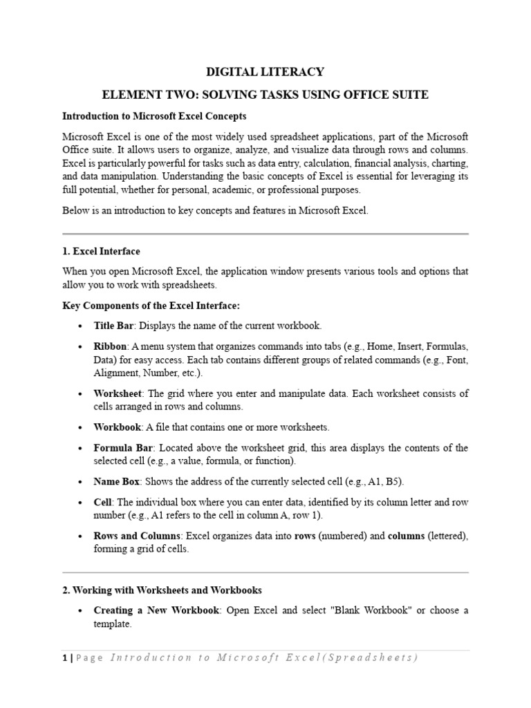 2|Page Introduction to Microsoft Excel(Spreadsheet s)